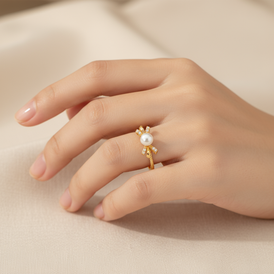 14% OFFPearl Bow Ring Large