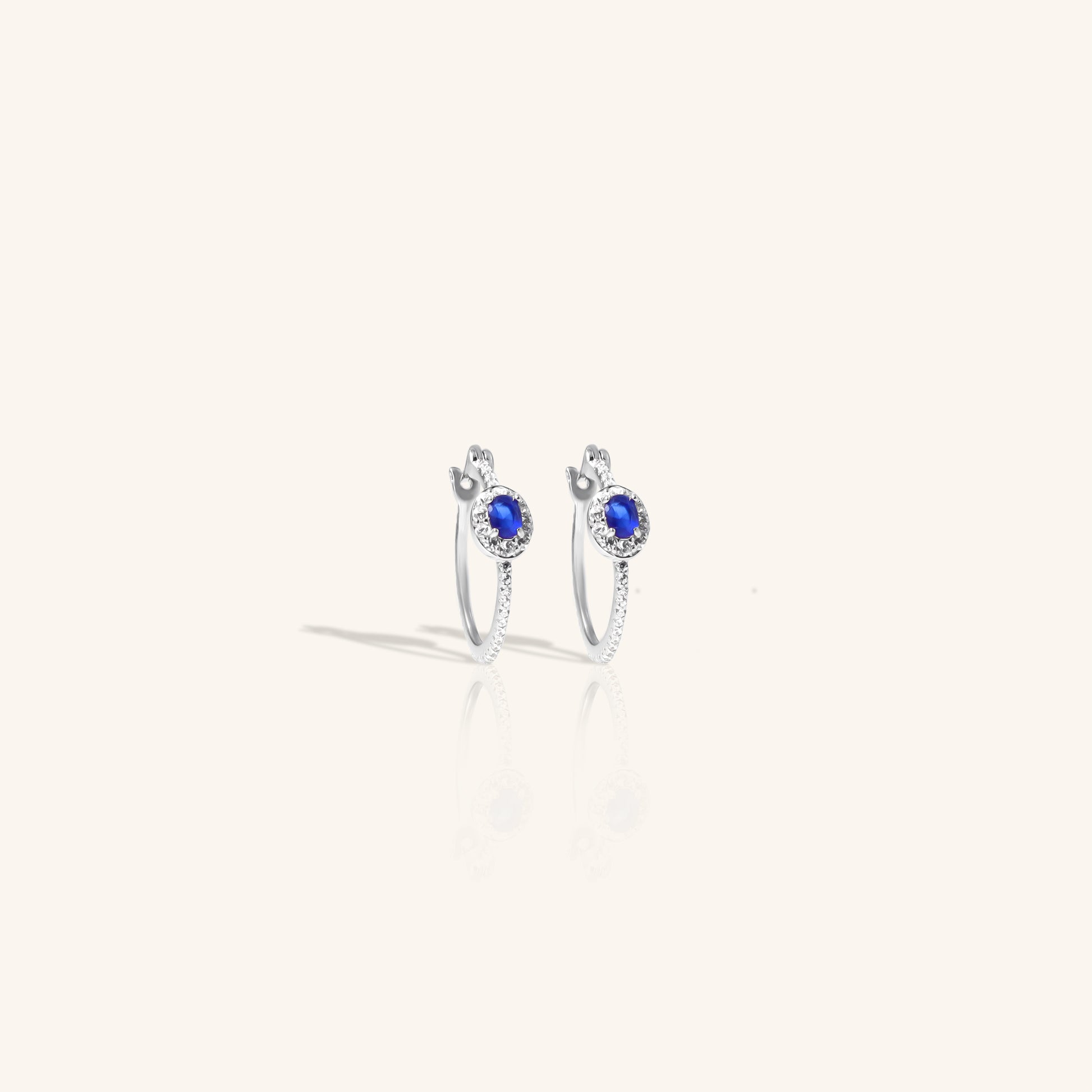 One Blue Sapphire Diamond Hoops