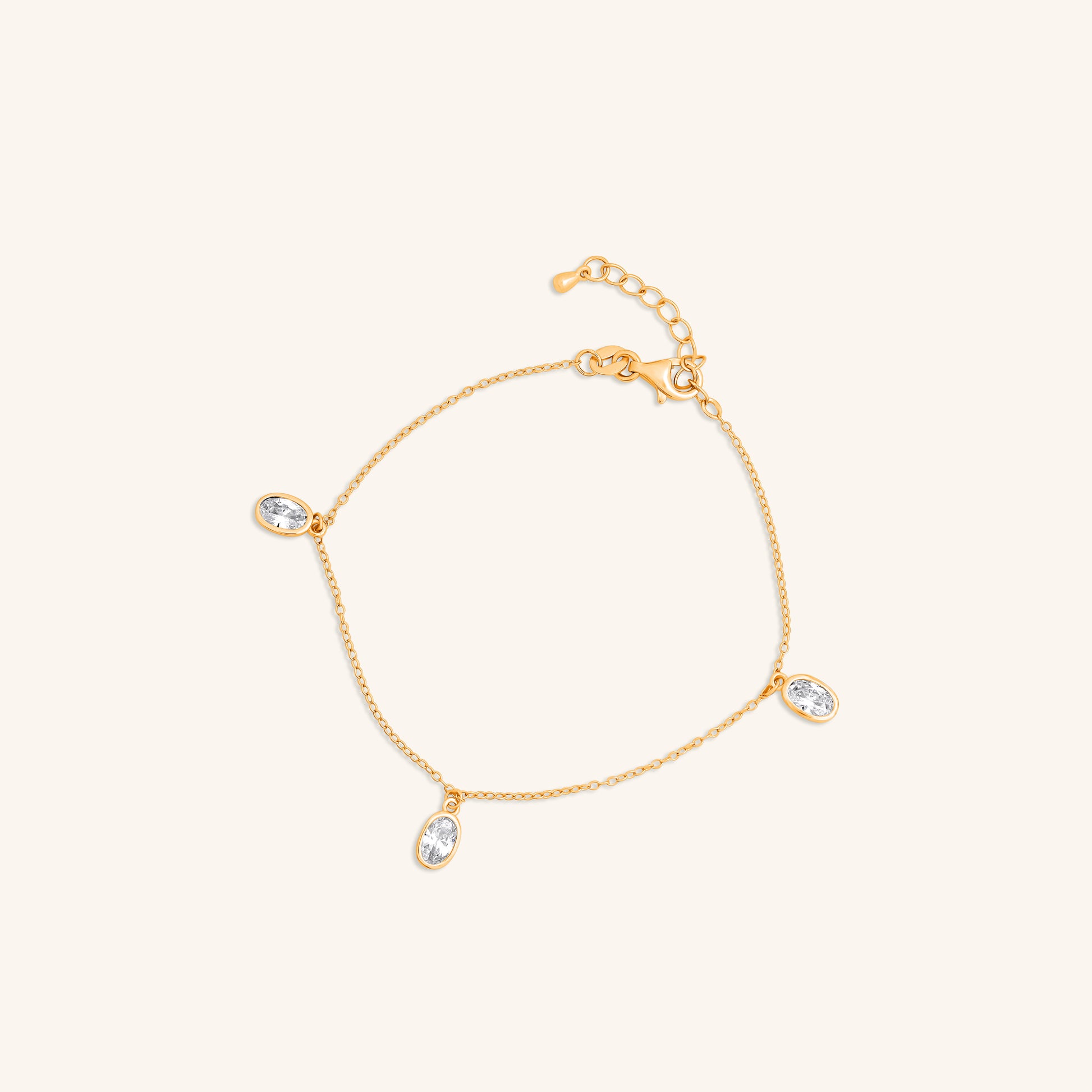 Elevate your elegance with the Three Oval Diamond Hanging Bracelet, featuring delicately suspended oval diamonds that catch the light with every movement. This bracelet offers a graceful shimmer that enhances any outfit, making it perfect for both everyday wear and special occasions. Its refined design ensures comfort while adding a sophisticated touch to your wrist, letting you shine effortlessly wherever you go.